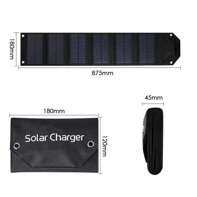 לוח טעינה סולארי קומפקטי, מתקפל וקל משקל שמאפשר אחסון ונשיאה נוחים.